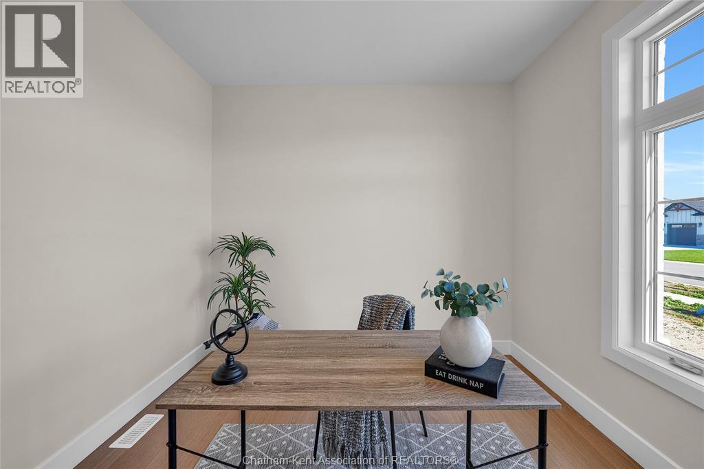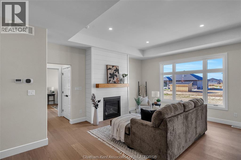 Step into this NEW BUILD home that instantly feels right! The Fairview model by Mi Cazza Construction delivers bright, easy living in one of Chatham’s most exciting new neighbourhoods just off Indian Creek with quick 401 access. From the moment you enter, the open layout welcomes you with natural flow and inviting gathering spaces designed for real life. The kitchen becomes the heart of the home with beautiful Mylen cabinetry, a statement island made for morning coffee and evening conversations, and a walk-in pantry that keeps everything organized. Just beyond, the dining area and cozy family room with gas fireplace create the kind of space where everyday moments turn into lasting memories. The thoughtful split-bedroom layout offers flexibility for families, guests or a dedicated home office, while the private primary suite tucked at the back of the home offers a true retreat with a walk-in closet, double vanity and walk-in shower. Downstairs, the bright lower level with large windows is ready to grow with you, offering endless possibilities for future living space, entertaining or family hangouts. Set on a premium 61-ft wide lot over 140 ft deep, the covered rear porch and expansive backyard invite summer barbecues, quiet evenings and room to dream big outdoors. Skip the stress, skip the wait and enjoy the confidence of brand-new living backed by the peace of mind of the 7-Year Tarion Warranty. Perfect for downsizers, professionals or move-up buyers seeking one-floor living. Concrete driveway and sod scheduled for completion. Some exterior photos may be artist renderings. This is the kind of home buyers wait for — book your showing today. (id:4555)